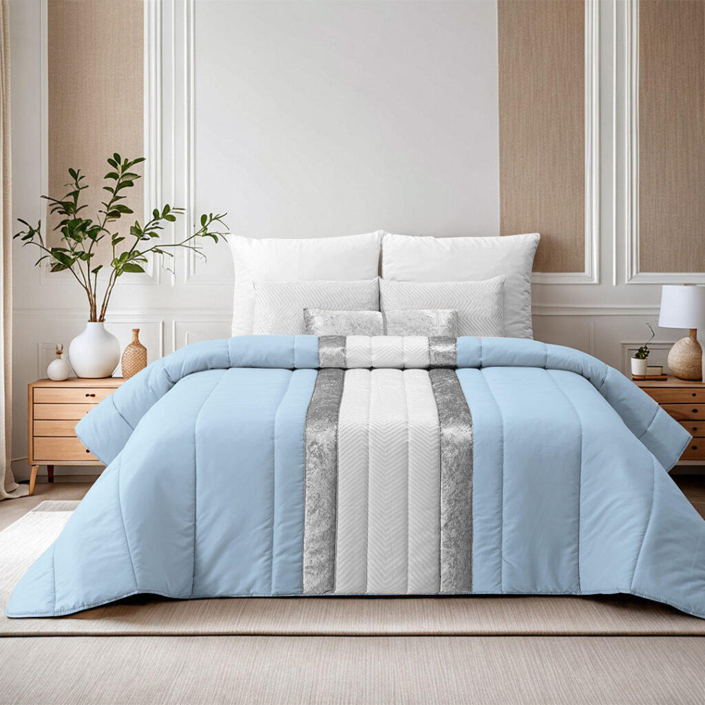 Edredão Com 3 Almofadas Cheias Luna Azul