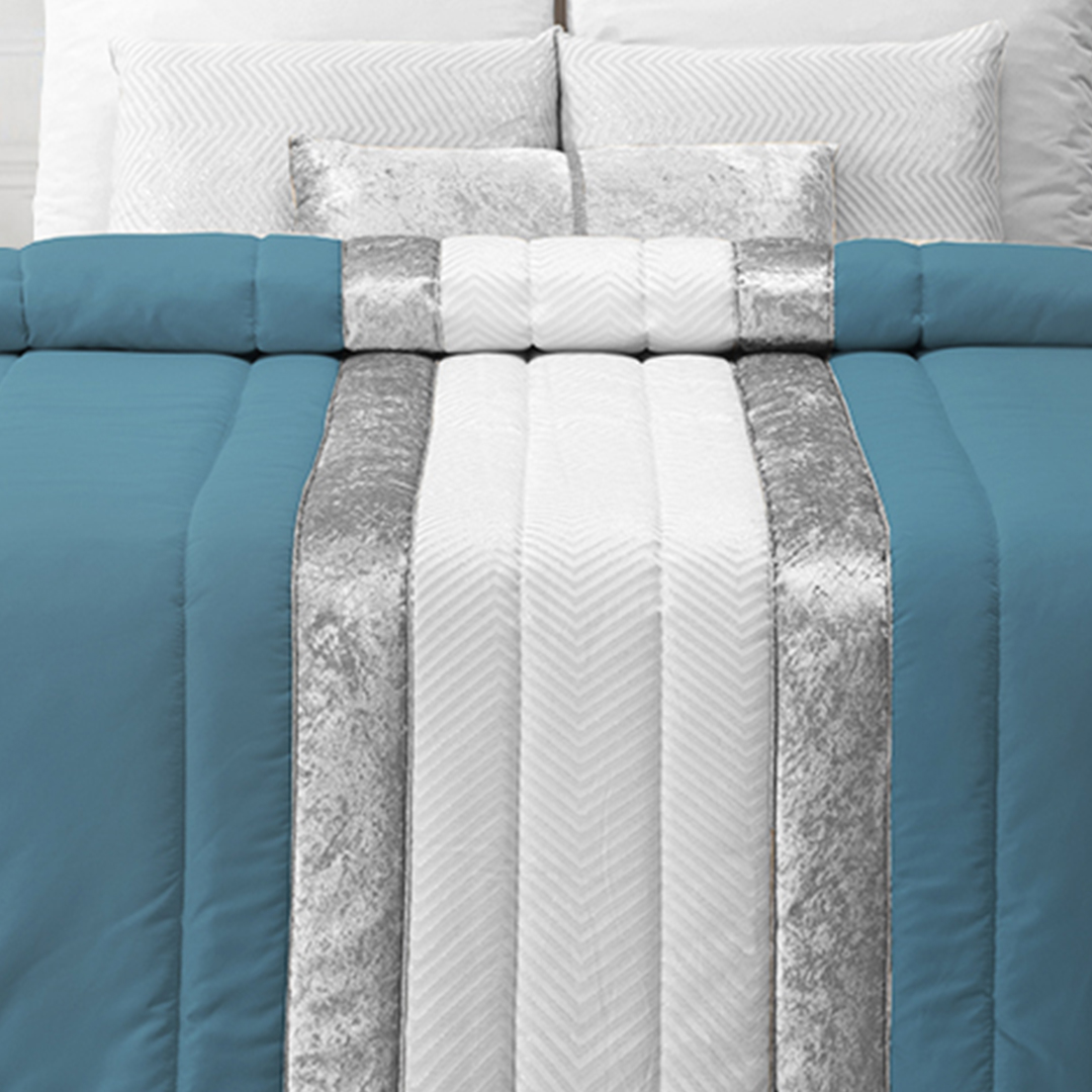 Edredão Com 3 Almofadas Cheias Luna Aqua