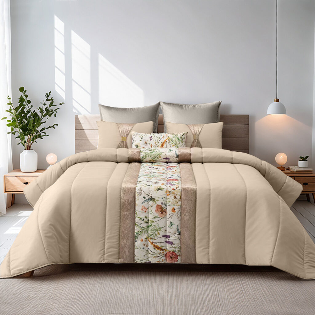 Edredão Com 3 Almofadas Cheias Nuri Bege