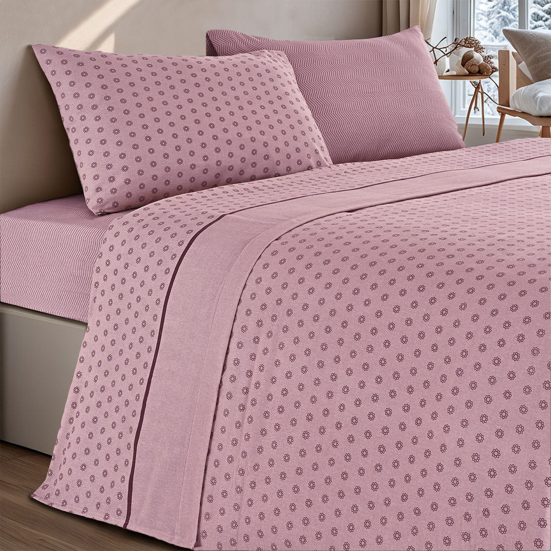 Jogo de Lençóis em Flanela com Estampado Flor 100% Algodão